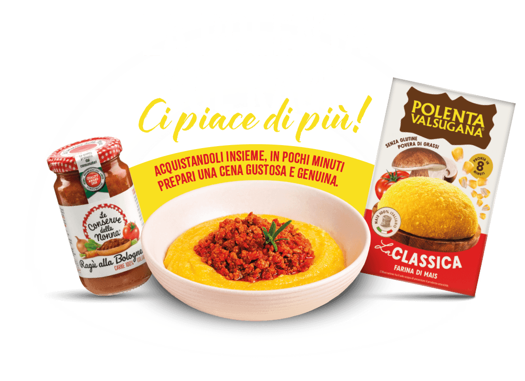 - Acquista almeno 1 prodotto Polenta Valsugana + 1 prodotto Le Conserve della Nonna in un unico scontrino.