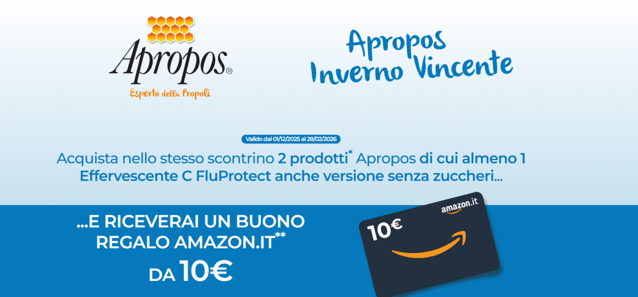 #Apropos #InvernoVincente #PremioCerto #OperazioneAPremi #BuonoRegalo #AmazonGiftCard #Farmacia #Parafarmacia #VitaminaC #Salute